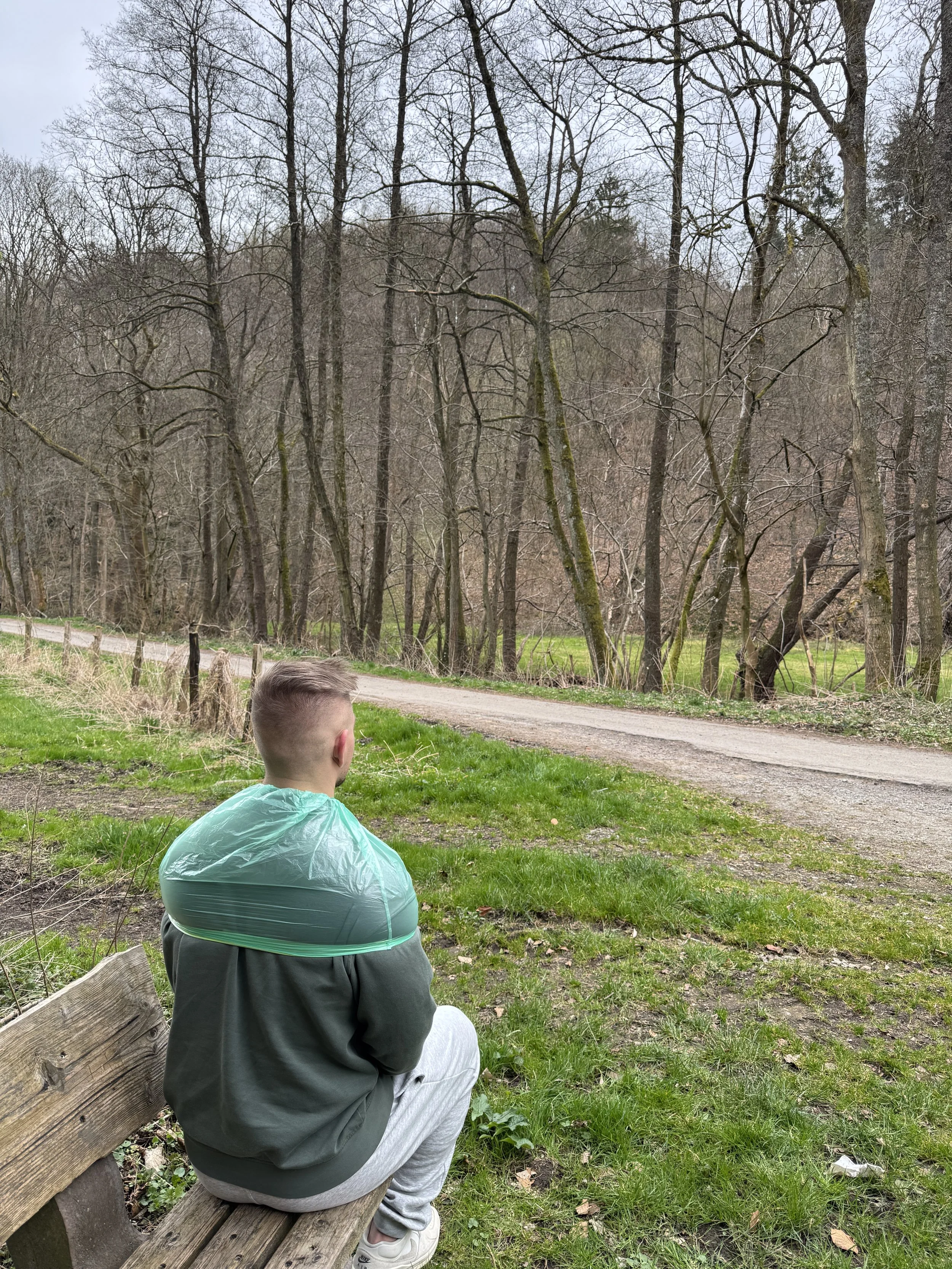Ensimmäinen pysähdyspaikkamme osoittautui hautausmaan parkkipaikaksi, joten jatkoimme matkaa. Lopulta löysimme syvältä laaksosta pienen Wiesengrundin kylän, jonka lähelle metsäaukealle jäimme yöksi. Paikka oli hiljainen, vieressä solisi pieni joki ja tunnelma oli täydellisen levollinen. Illalla kokkasimme ulkona ja Jessika päätti leikata hiukseni – metsämaisemien keskellä, muovipussista tehdyn kappan avulla. Vapauden ja improvisoinnin yhdistelmä teki hetkestä ikimuistoisen.