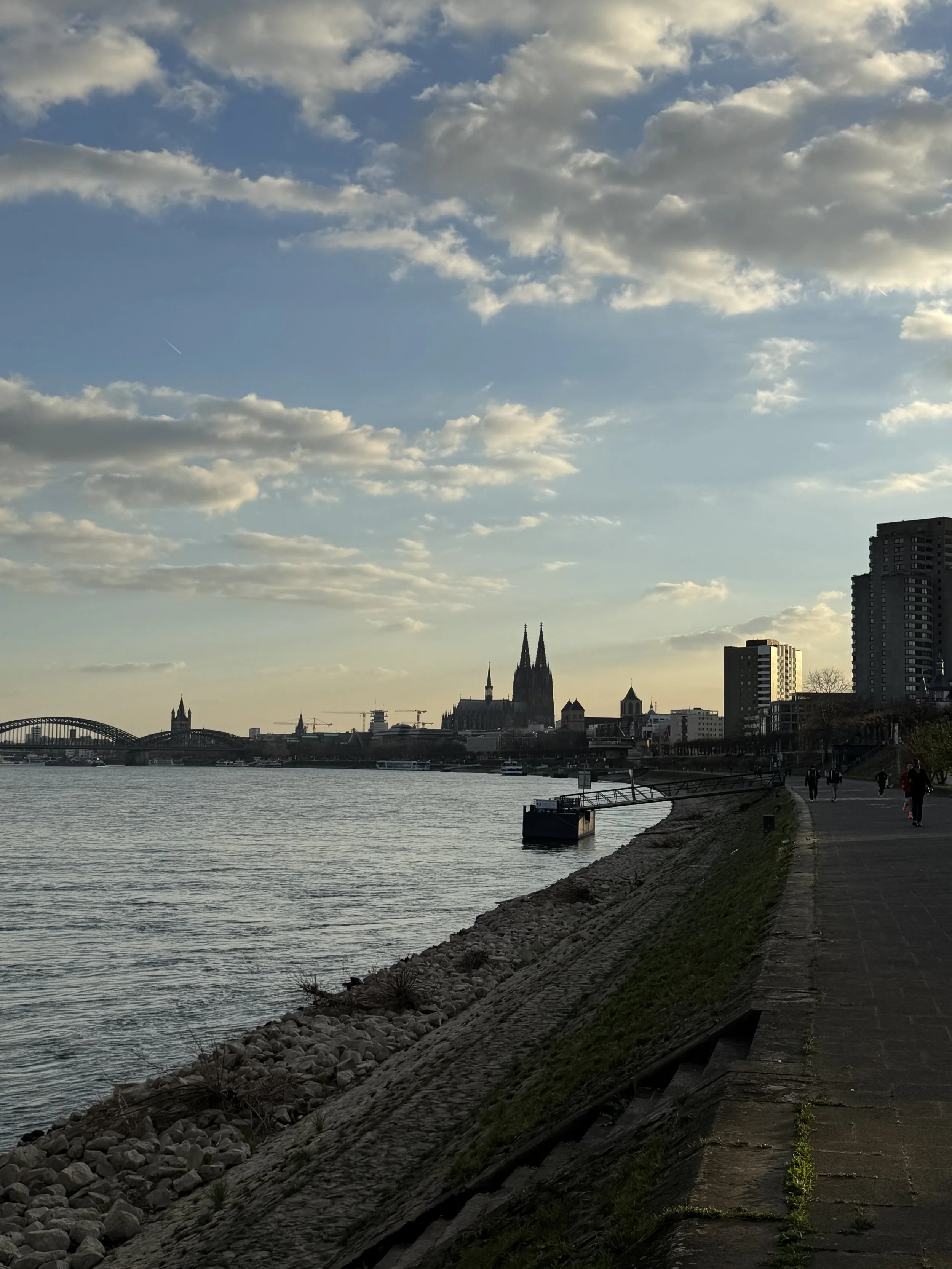 Kävely Reinin vartta pitkin auringonlaskun aikaan oli vaikuttava kokemus. Kaupungin horisontissa kohosi useita kirkkoja, ja lopulta edessämme avautui majesteettinen Kölnin tuomiokirkko, jonka sisätilojen lasimaalaukset pysäyttivät ajattelemaan menneitä aikoja. Kirkon jälkeen suuntasimme syömään Google Mapsin avulla – hyväksi todetulla menetelmällä etsimme ravintolatiheimmän alueen. Päädyimme Hänneschen und die Pfeffermühle -ravintolaan, jossa nautimme paikallisia herkkuja. Köln yllätti positiivisesti: se oli elävä, ystävällinen ja täynnä energiaa