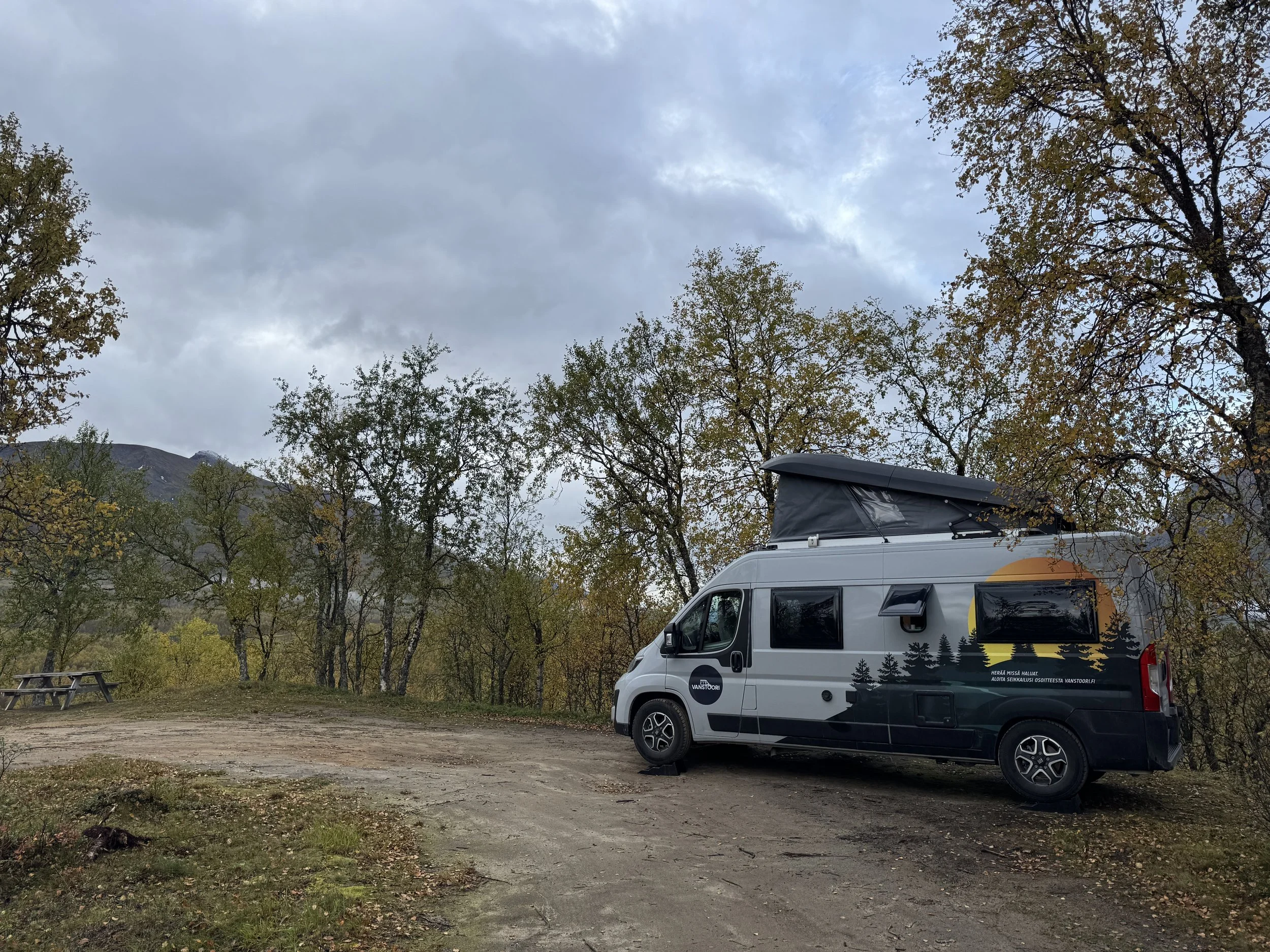 Hestenin vaellukselta palattuamme jatkoimme matkaa kohti Tromssaa ja Lyngenin alppeja. Raskaan päivän jälkeen emme halunneet ajaa pitkälle, joten yöpaikaksi valikoitui Fjordbotn Camping. Leirintäalue sijaitsi upeasti aivan meren rannassa, ja tuttuun tapaan alue oli lähes tyhjä – saimme valita autolle paikan vapaasti aivan rannan tuntumasta.